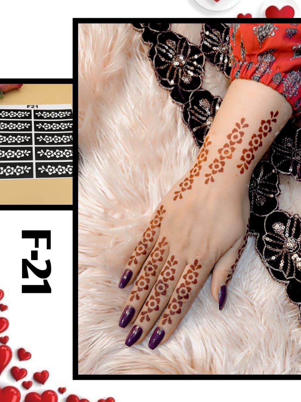 Our premium quality adhesive and intricate patterns make every design look like real mehndi.